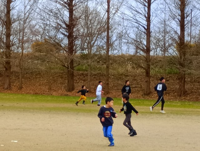 寒空の中でも、子どもたちはグランドで遊んでいます。