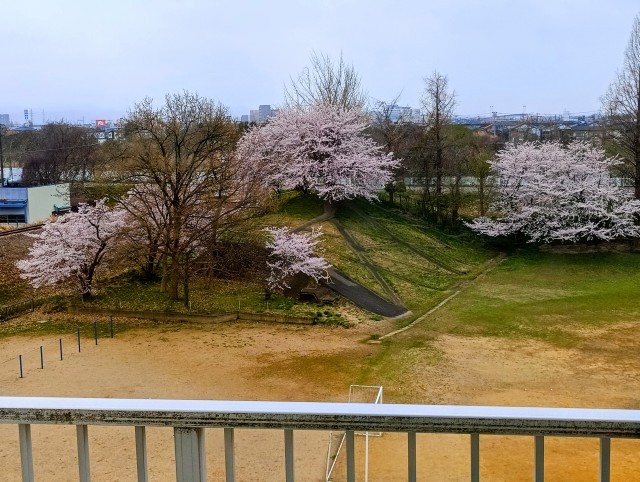髙いところから眺める太陽の丘は、桜が満開!