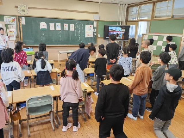 朝の1年生の教室音楽が流れてきます。