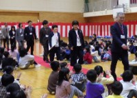 ゆらゆら、揺れるたらいのコントロールはとても難しそうですが、みんな上手に漕いでいきます。