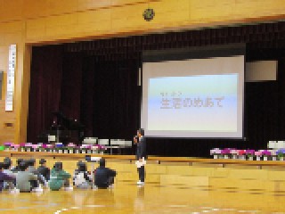 始業式では、代表児童のめあて発表、校長先生のお話、生活目標についてお話がありました。