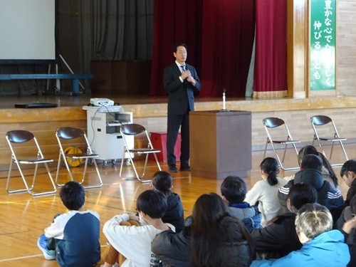 各学年の代表児童が、2学期に頑張ったことや3学期の目標などを語っていました。