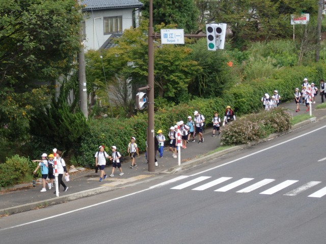 公園までの道中では、下学年のリュック等を持ってあげる上学年の姿、学年関係なく「頑張って」と声を掛ける姿。微笑ましい姿が見られました。