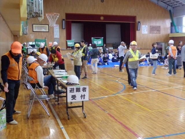 今日は、小池小学校と隣りの大関小学校で、燕第一地区まちづくり協議会による防災避難訓練が行われました。