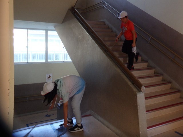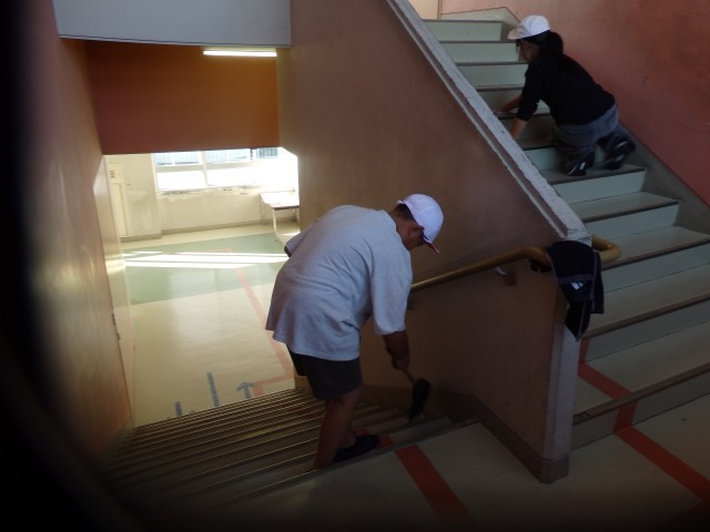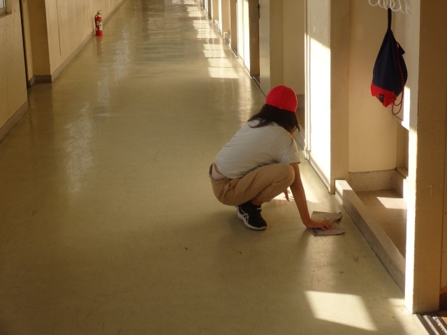 その文化祭へ向けて、朝の体育館では、作品紹介の代表児童が、発表の練習をしていました。午後は、1~5年生が下校し、6年生が文化祭の前日準備で、掃除をしていました。お客様を迎える校舎が、6年生によってきれいになりました(^_^)6年生、ありがとう!