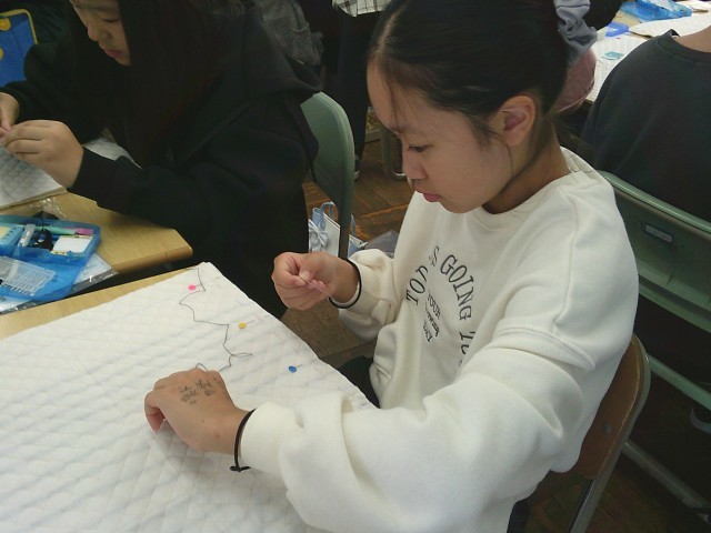 6年生は、先週から、家庭科で、トートバッグ作りに取り組んでいます。写真は、先週17日のもので、教室でやりました。今日21日(火)は、家庭科室でやりました。ボランティアさんに教えてもらう、助けてもらう等して、困り感も減り、スムーズに取り組めているようです(^_^)6年生のみんなは、このまま集中してやり、素敵なトートバッグを完成させてくださいね。