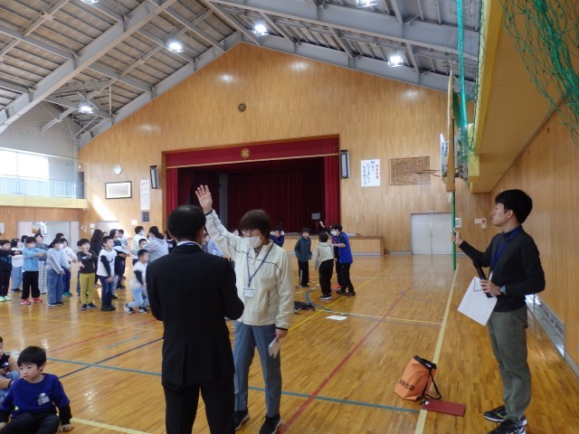 今日の3限に、不審者対応の避難訓練(事前に予告済み)を行いました。体育館に不審者が来て、体育をしていた2年生が理科室へ避難し、不審者確保の後、全校児童が体育館へ避難するという流れでした。