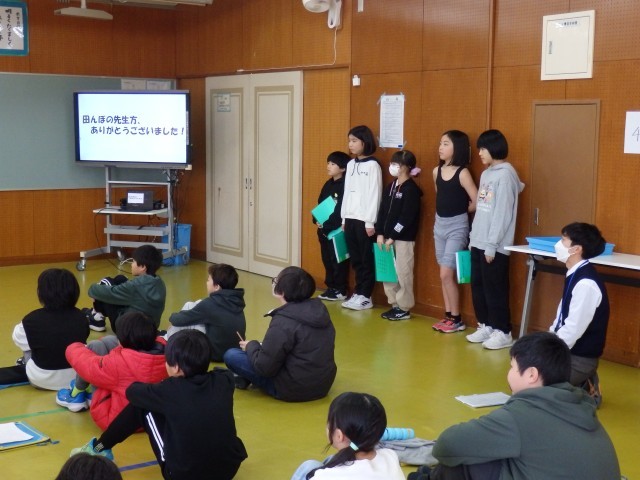 「発表を堂々としていましたね」「タブレットパソコンを上手に使っていて、すごいと思いました」「子どもたちは、発表を聞いていると成長したことが分かります」とお褒めの言葉をいただきました。5年生、頑張りましtね。すばらしいです。