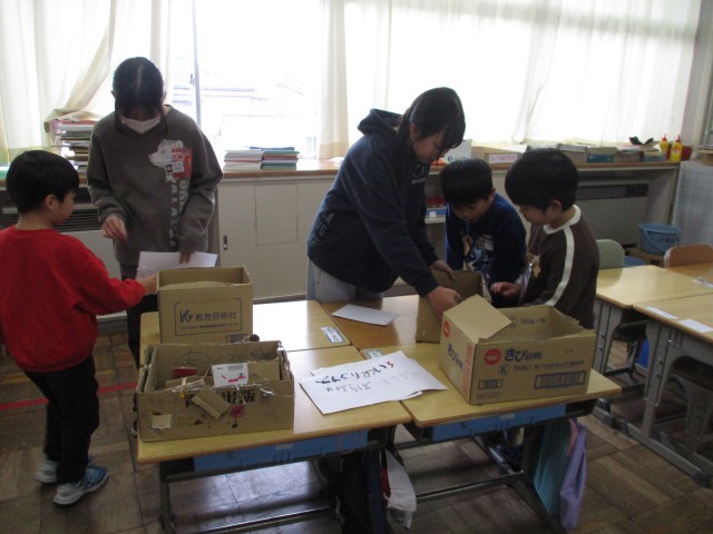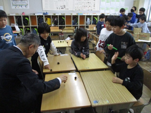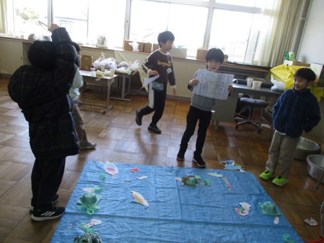 1年生は、生活科の学習として「おもちゃランド」を準備してきました(12/10の記事でお知らせしたとおりです)。そして、先週末から今週にかけて、「おもちゃランド」を行いました。1年生が昼休みに、全校のみんなに楽しんでもらおうと、頑張っていました。
