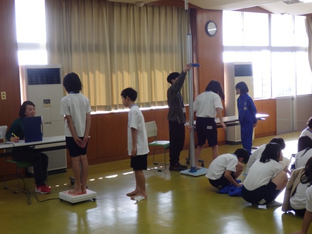 その後、身長と体重を計ります。学年によっては、読書をして待っている学年もありました。身長と体重の結果は後日配られますので、そこで、自分の身体のことを知ることができます(^_^)