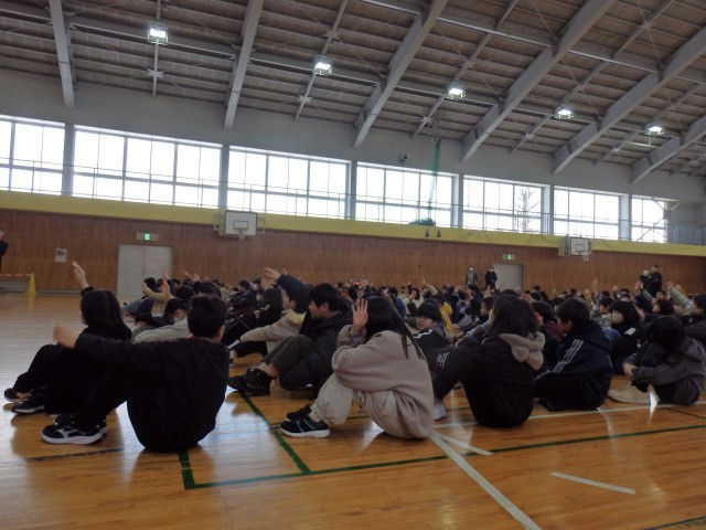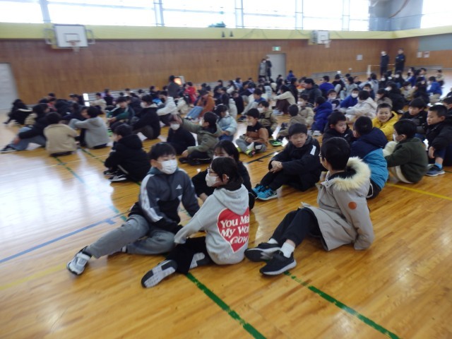 今日の朝、ストーブで暖かくした体育館で、2月の全校朝会を行いました。