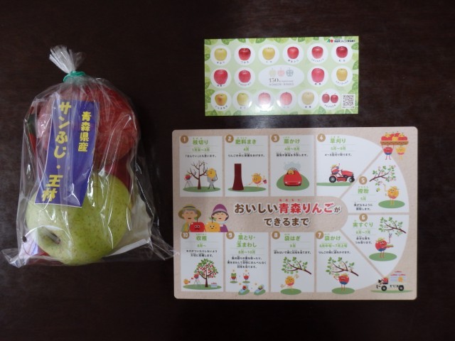 今日の朝、新潟中央青果卸売市場の方々が来校され、小池小学校の児童全員に、青森県産の美味しいリンゴを贈呈していただきました。赤いリンゴと青いリンゴ1個ずつです。その他に、リンゴの下敷きとシールもいただきました。今日の午後に、子どもたちにそれらを配ります。