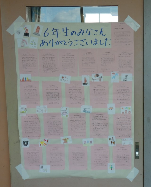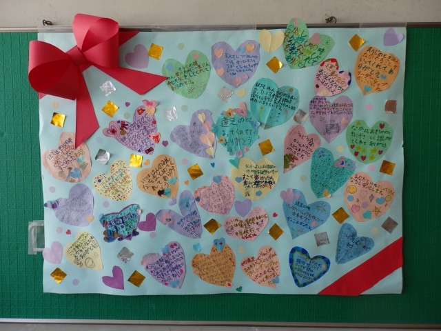 今日の午前と午後、校舎をまわっていると、6年生廊下の壁には、2年生からの感謝の似顔絵、1年生からの感謝のハートフルカードが貼ってあり、新校舎階段上がってすぐの掲示板には、3年生からの感謝の言葉が貼ってあります。1階の玄関に入ってすぐの掲示板には、6年生から下級生や学校に対しての感謝の言葉が貼ってあります。今、小池小学校は、いろいろな感謝の思いが掲示されています(^_^)そして、6年生の卒業、そして各学年の終了まで残りわずかになってきました。