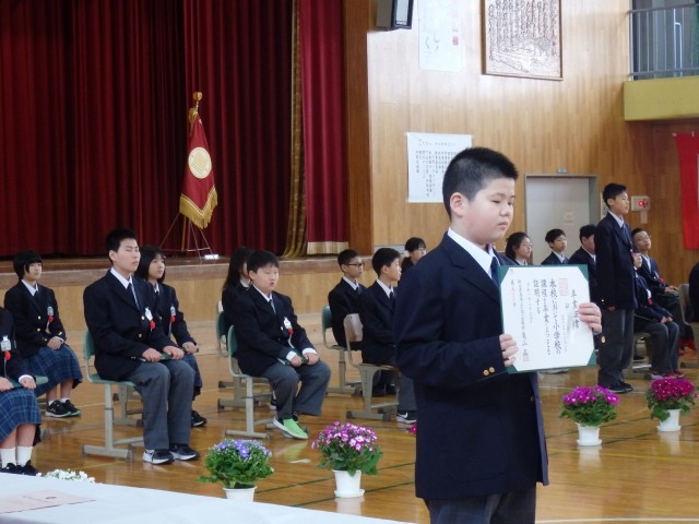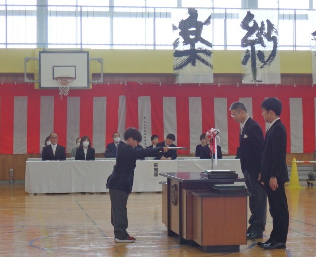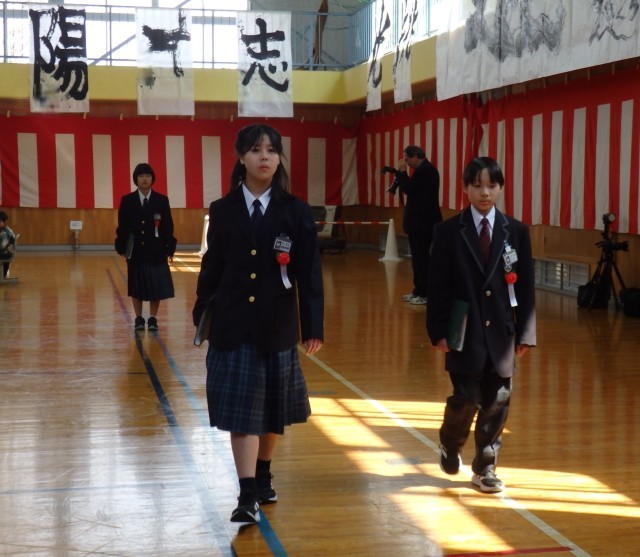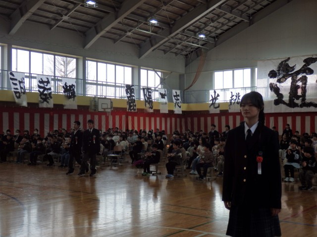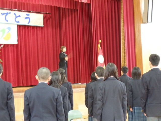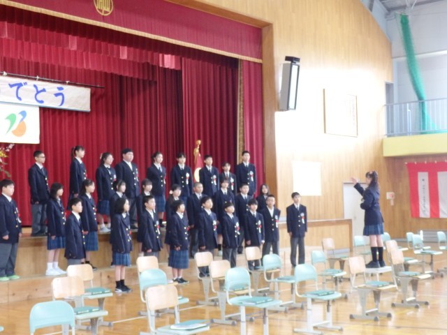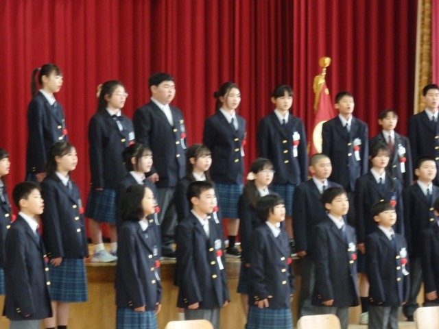 卒業生の堂々とした入退場、証書授与の姿、門出の言葉は、立派でした。卒業生の合唱「旅立ちの日」も、心に響きました。参加した在校生も、心を込めて、門出の言葉を言い校歌を歌っていました。