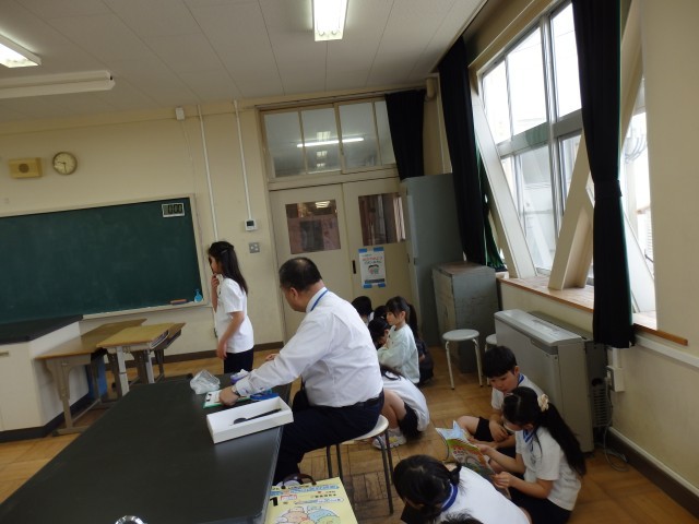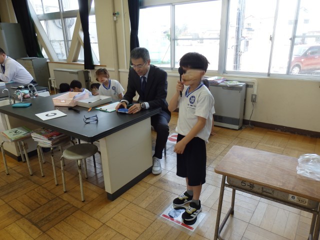 先週10日(金)から今日14日(火)までの間、全学年が視力・聴力検査、発育測定を行いました。 理科室で視力検査、放送室と保健室で聴力検査を行い、視聴覚室で発育測定を行いました。
