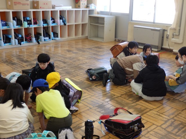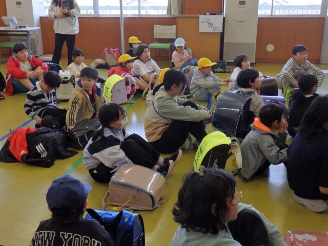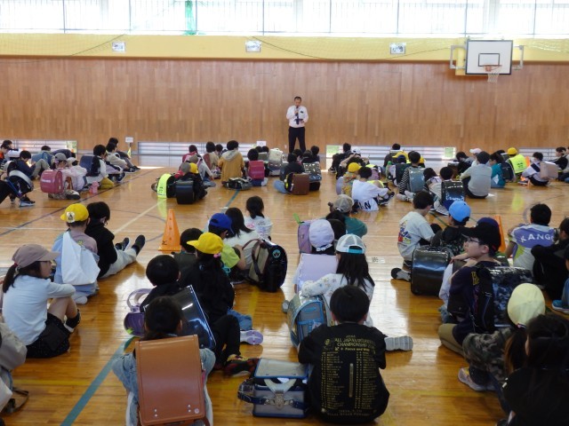 町内子ども会が終わり、体育館へ集合した子どもたち。生活指導主任から話があり、その後、登校班で集団下校となりました。今日は、年度初めということもあり、職員も見守りながら下校しました。気を付けていても防ぐことが難しい事故が突発的に起こることがありますし、学校では「自分の身体は自分で守る」ことを引き続き指導していきます。保護者及び地域の方々、見守りやお声掛けをよろしくお願いいたしますm(__)m