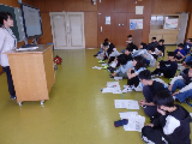 朝の視聴覚室では、6年生全員が、清掃担当教諭の話を聞いていました。来週月曜日から、清掃班は1年生を加えての新清掃班になります。そのために、担当教師が掃除のやり方や班長としての行動について、清掃の班長・副班長になる6年生に説明していました。説明終了後は、各班ごとに相談をしました。