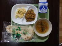 ご飯 牛乳 かき玉汁 かつおフライコクうまダレ ビーンズサラダ