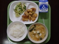 野菜の梅マヨ和え 春野菜のいり煮 ご飯 手作りふりかけ 牛乳
