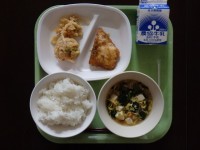ご飯 牛乳 五目豆 わかめの味噌汁 鯖(サバ)の塩麹焼き