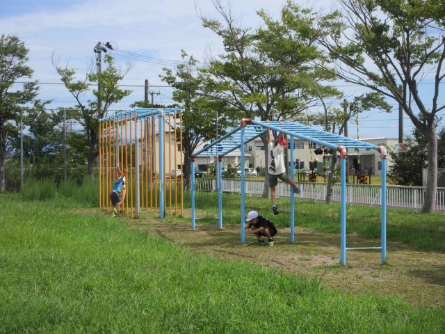 暑さ指数の数値も文句なし。築山の遊具が久しぶりに賑わっていました。