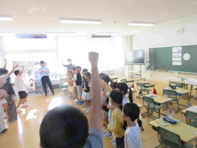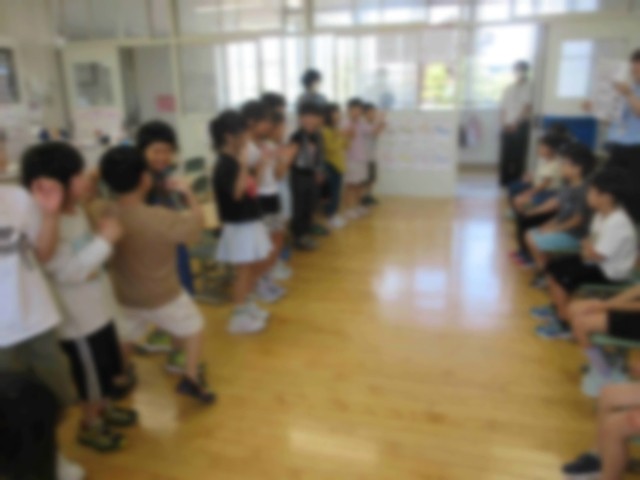 こちらの歌と踊りは、朝よりもさらに立派でした。ぶどう組のみなさんを粟生津小のあいさつ歌を教えてあげるという目的があったことが大きかったのでしょう。