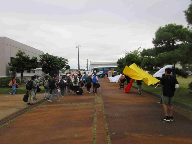 6年生のエール、そして全校の見送りを受けて出発するのが粟小流です。