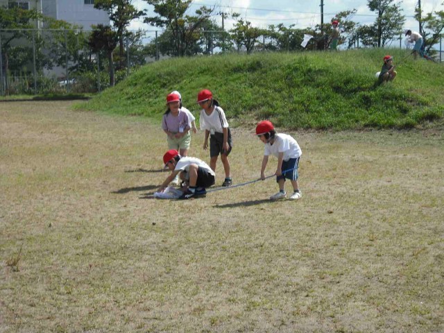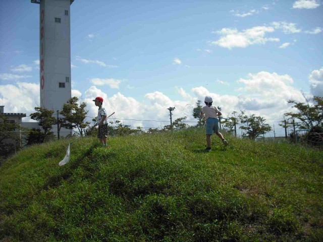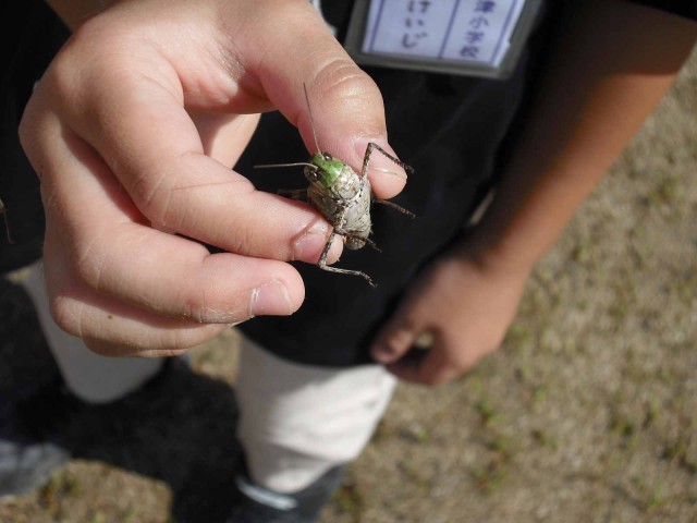 2・3・6年生合同体育を行っている同じ時間、1年生は築山で秋の虫さがしです。