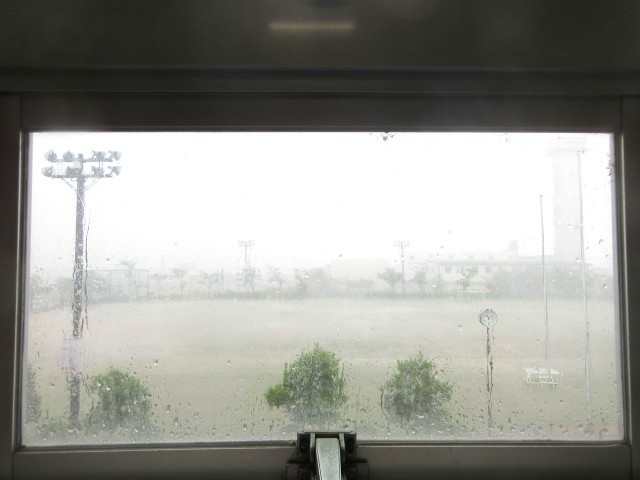 午前中は、グラウンドの先が煙るほどの大雨が何度か振りました。