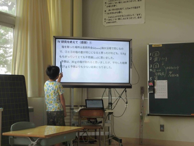 教室では、科学研究の発表練習をしていました。こちらは明後日が本番です。