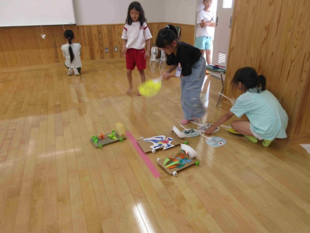 以前紹介した動くおもちゃを使って、「ふるさとの部屋」に遊びランドを作りました。