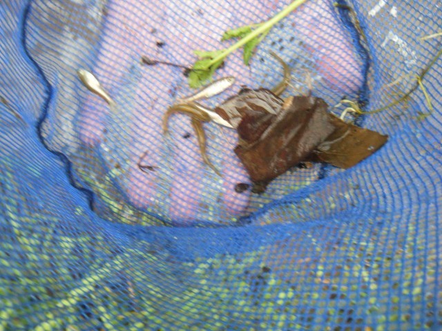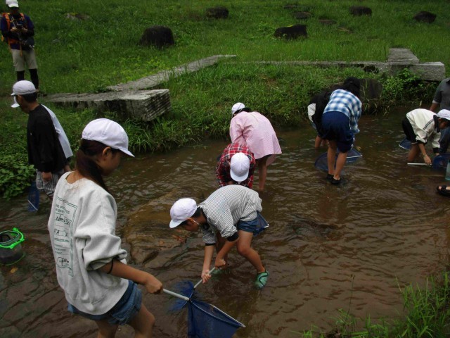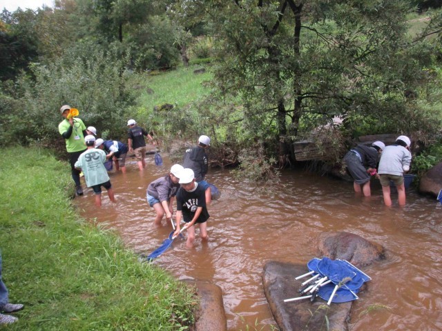 その後は水辺の生き物探し。網を使って川底を探るといろいろな水の生き物が姿を現しました。