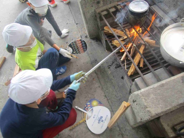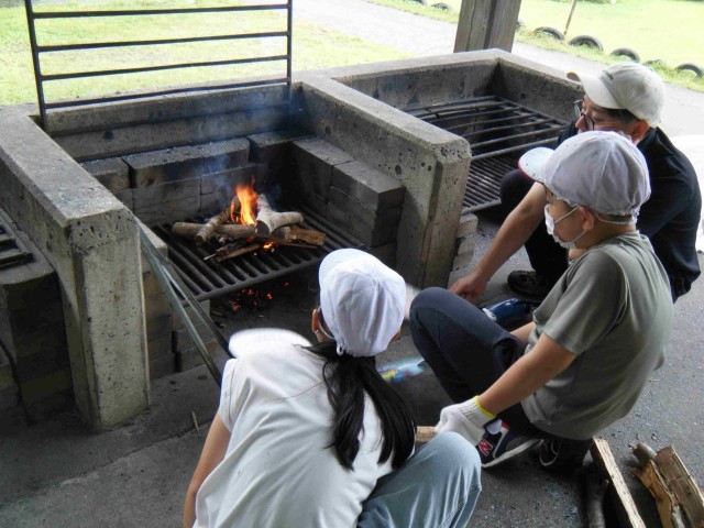 カレーを作るチームとかまどの火をを起こすチームに分かれて作業しました。