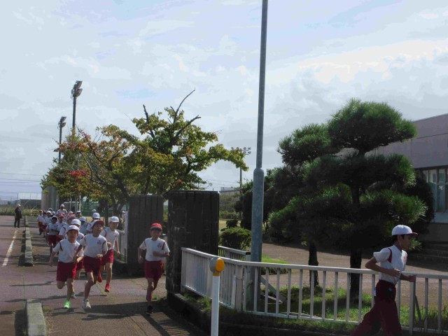 最後の業間マラソン 公開日 2025/10/06 更新日 2025/10/06 学校日記 今日は、天気が崩れると思っていたのですが、思いがけず天気に恵まれました。明日の本番を控え、今日が最後の業間マラソンです。