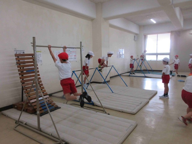 最近の休み時間に、鉄棒を設置してあるギャラリーが賑やかになっています。