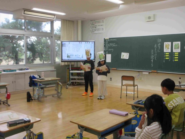 親友同士だけれど性格が違うがまくんとかえるくん。この2人の会話を楽しみながら音読していました。