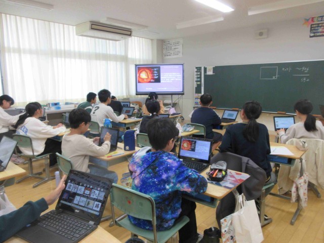 6年生理科 公開日 2025/10/20 更新日 2025/10/20 学校日記 「月と太陽」のい学習で調べたことを発表しています。プレゼンテーション資料作成アプリを駆使して自分が調べて興味を持ったことを友だちに伝え合います。