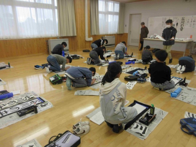 6年生書写・5年生書写 公開日 2025/11/18 更新日 2025/11/18 学校日記 地域の先生より5・6年生の毛筆指導をしていただきました。墨の香りと引き締まった空気に包まれながら、良寛書道展の課題を練習しました。