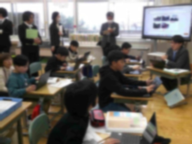 粟生津小以外の多くの先生がいる中で、4年生10名の子どもたちは普段通りの姿で発言したり仲間同士で意見を交流したりしていました。