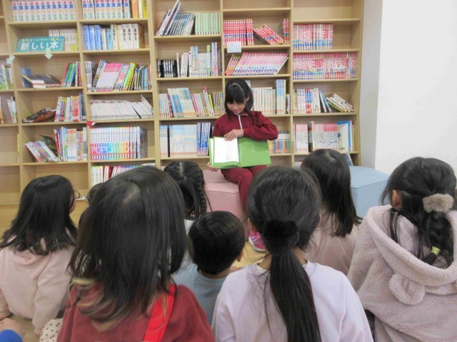 今日は図書委員による低学年向けの読み聞かせを行い、1・2年生がたくさん聞きに来てくれました。