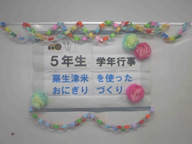 学年PTA行事でも収穫したお米(粟生津米)を使っておにぎりを作りました。