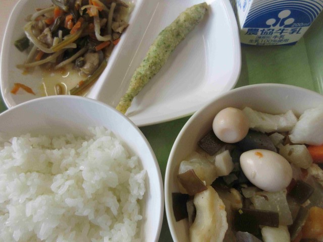 今週の給食には「飛燕舞」が使われています。そしておかずは「飛燕舞」をおいしく食べるための和食献立です。