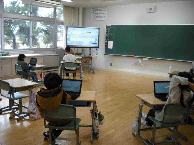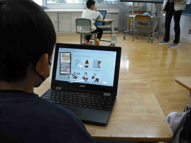 2年生はタブレット端末を使ってクリスマスカードを作りました。