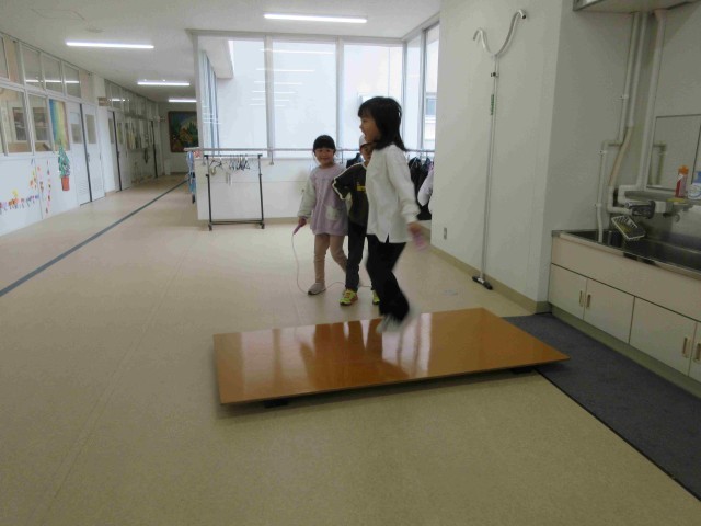 2重跳びにチャレンジする子の願いを実現する教具です。