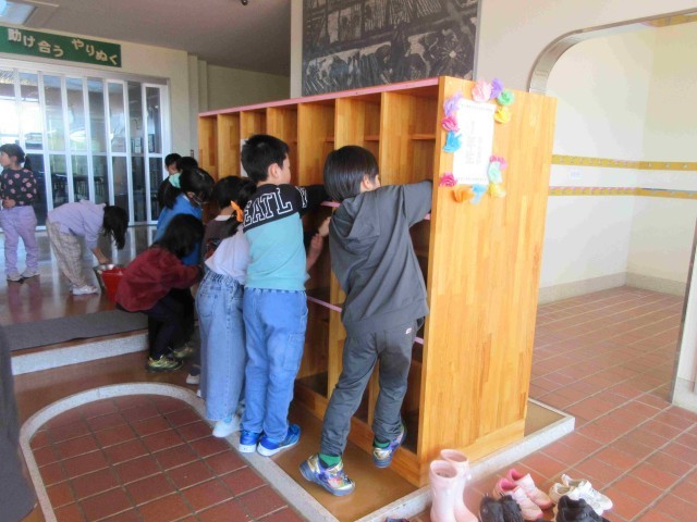 靴箱も忘れずに 公開日 2025/12/19 更新日 2025/12/19 学校日記 自分の靴箱の拭き掃除。冬休みに入る前にこれも忘れてはいけません。自分のことは自分でできる。かっこいい1年生たちです。