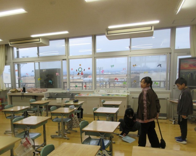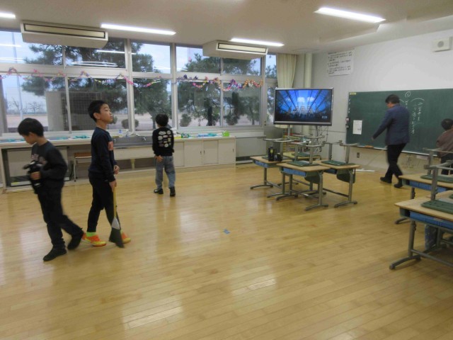 今日が最後の清掃。各自の教室をきれいにします。(6年生には階段や学習室なども掃除してもらいました。)