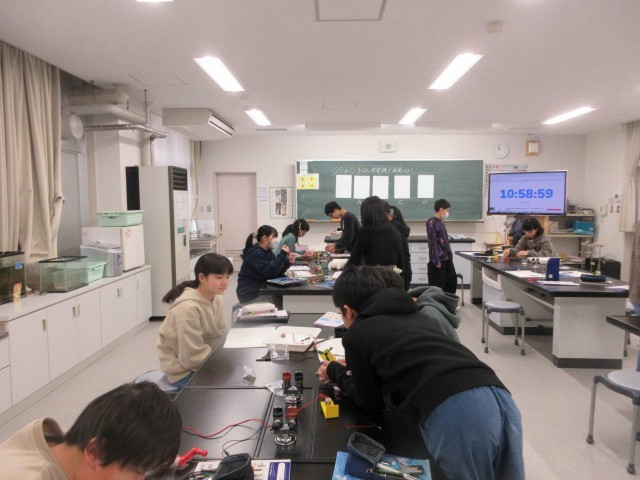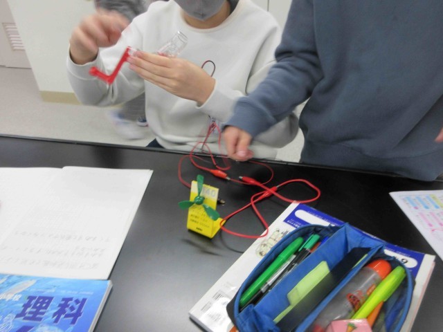 6年生理科 公開日 2026/01/19 更新日 2026/01/19 学校日記 手回し発電機を使って電気を作ります。豆電球やモーター・発光ダイオードなどそれぞれの器具を働かせるために必要な電力が、ハンドルの手応えで分かります。