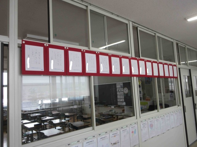 各教室前の廊下に,子どもたちの力作が並んでいます。