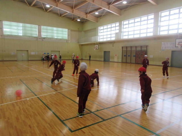 そんな条件でも休み時間に体を動かす子どもたち。進んで運動する姿ですね。