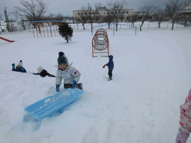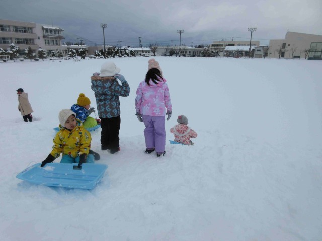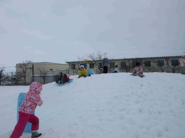 グラウンドの築山がゲレンデに変わりました。